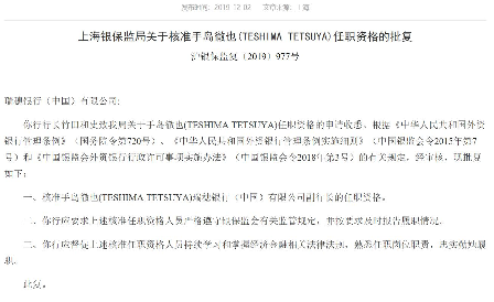和讯银行消息:2019年12月2日,银保监会官网披露,瑞穗银行(中国)副行长手岛徹也任职资格获批。批复显示,根据《中华人民共和国外资银行管理条例》、《中华人民共和国外资银行管理条例实施细则》、《中国银监会外资银行行政许可事项实施办法》,上海银保监局核准手岛徹也瑞穗银行(中国)副行长的任职资格。
