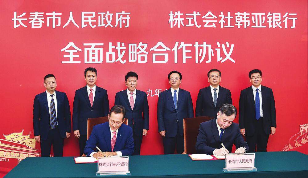 长春市市长刘忻与韩亚银行行长池圣圭分别代表双方签署全面战略合作协议。在吉期间,咸泳周一行与省直有关部门、长春市负责同志就项目合作事宜进行了深入对接。
