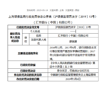 汇丰银行(中国)被罚100万:严重违反审慎经营规则 日期: 2026-04-17 06:11 栏目:金融要闻 浏览: 中国金融网5月15日讯 上海银保监局近日公布行政处罚信息公开表显示,汇丰银行(中国)有限公司因贷款自主支付事后管理严重违反审慎经营规则;部分信用卡资金用于非消费领域,被上海银保监局责令改正,罚款共计100万元。 以下为行政处罚信息公开表原文: 标签: 上一篇:三菱日联银行上海被罚50万 分支机构内控管理失效 下一篇:东亚银行:今年开局良好 将继续提升数码化 相关推荐 台湾金融机构直接持股厦门银行 东亚中国发布《2018企业社会责任报告》 花旗中国副行长袁俊:为“一带一路”提供高质量金融服务 星展第一季度利润意外增长9%